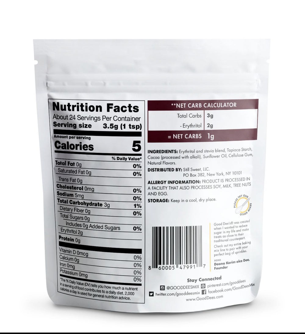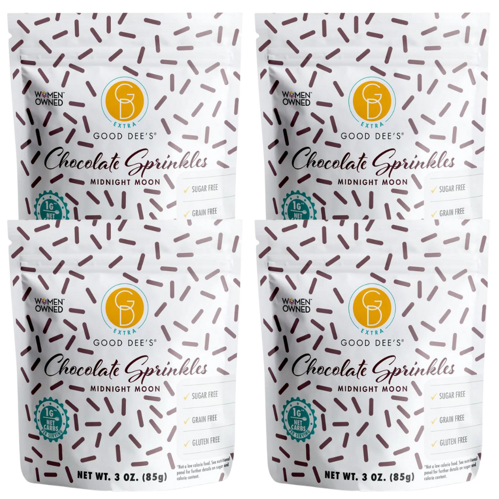 QUICK & EASY TO PREPARE & ENJOY: Good Dee’s sugar free sprinkles are a fun zero carb way to jazz up your keto cakes and cookies. Easy and fun to make, they take your keto baking to a whole new level. Good Dee’s Midnight Moon Chocolate Sprinkles pack is only 1g net carbs per serving. Dark chocolate color so cakes and treats stand out! Skip out on the sugar, trans fats, and artificial food colorings by adding some pinches of these sprinkles. You'll be sprinkling them on everything sweet you eat!