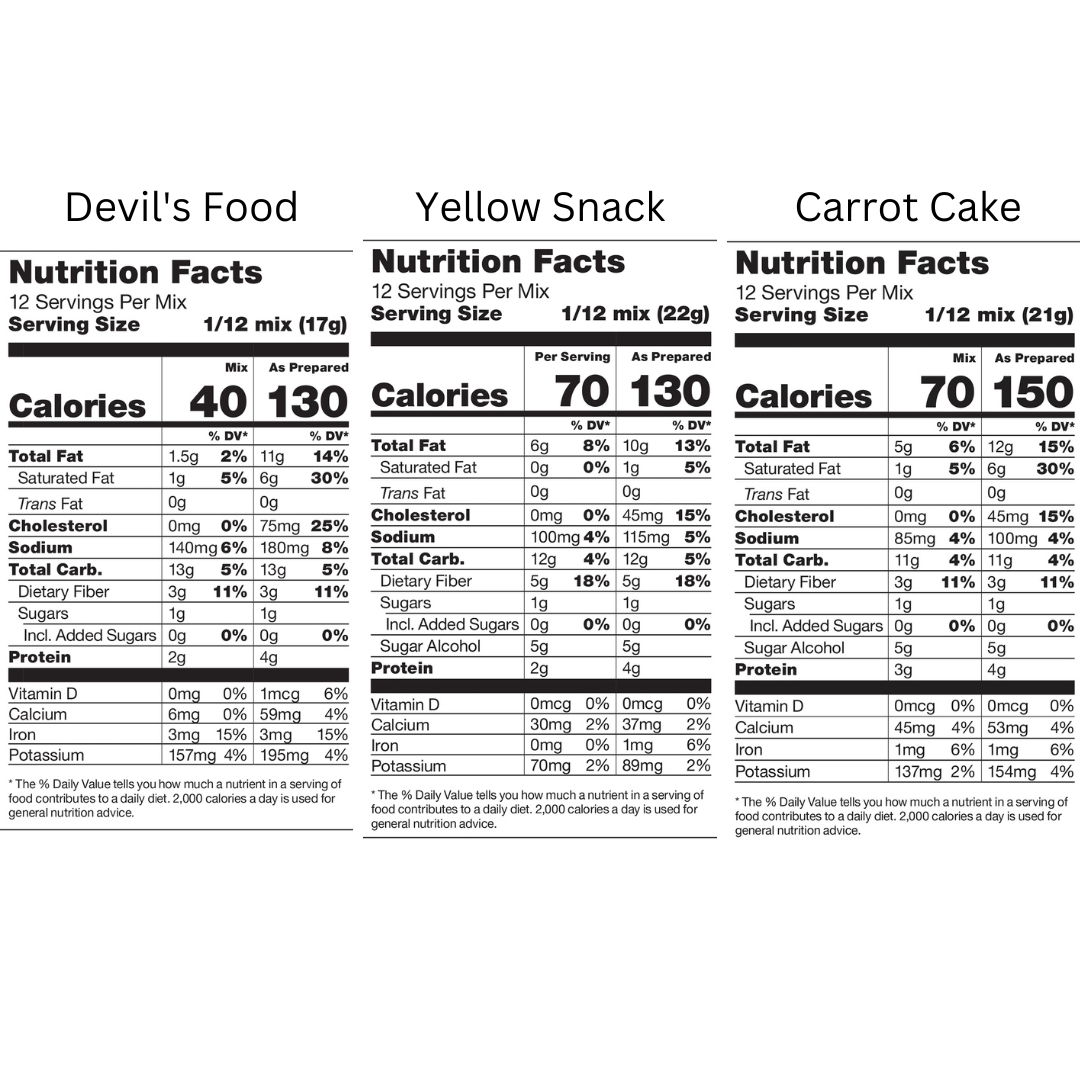 Indulge in the delicious no sugar sweetness of our Three Cakes Bundle! Our gluten-free and low-carb selection includes an indulgent Devil's Food Cake, a classic Yellow Snack Cake, and a decadent Carrot Cake. Treat yourself with these mouthwatering cakes and satisfy your sweet tooth!